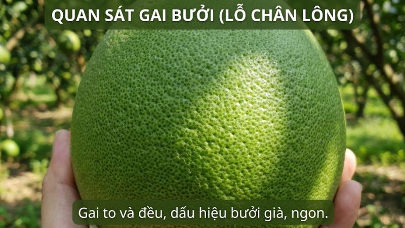 - Bưởi già, ngon: Gai bưởi to, “nở” đều khắp bề mặt quả. Điều này chứng tỏ trái đã đủ độ chín, già quả, mọng nước và ngọt.