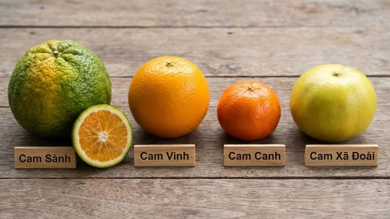 - Cam Canh: Quả nhỏ (80-120g), vỏ mỏng màu vàng cam, vị ngọt lịm, dùng để bóc ăn, giá thành cao (50.000-80.000đ/kg).