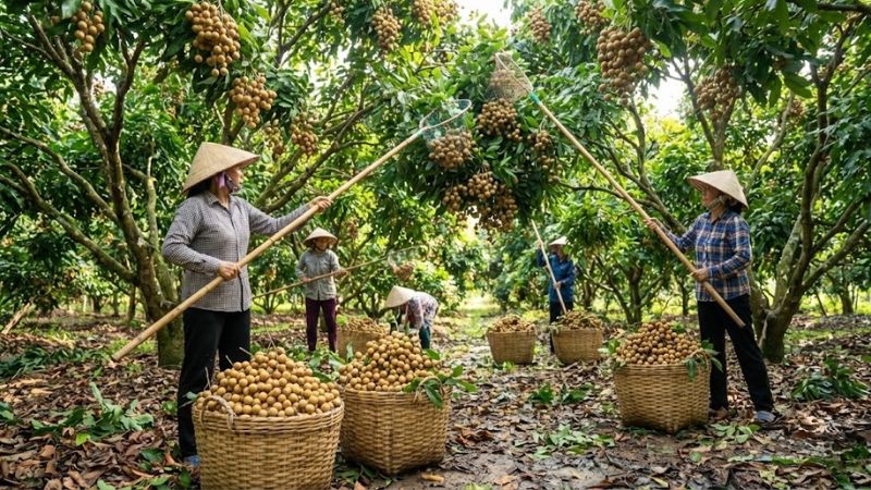 Thu hoạch nhãn xuồng đúng thời điểm để đảm bảo độ giòn ngọt